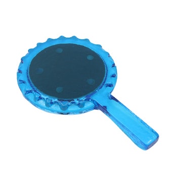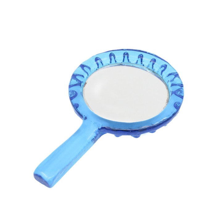 Coolaste retro handspegeln i tungt glas. Färgen är så härligt intensiv och den är oerhört vacker när den får lite ljus på sig. Magi.24 x 15 cm.